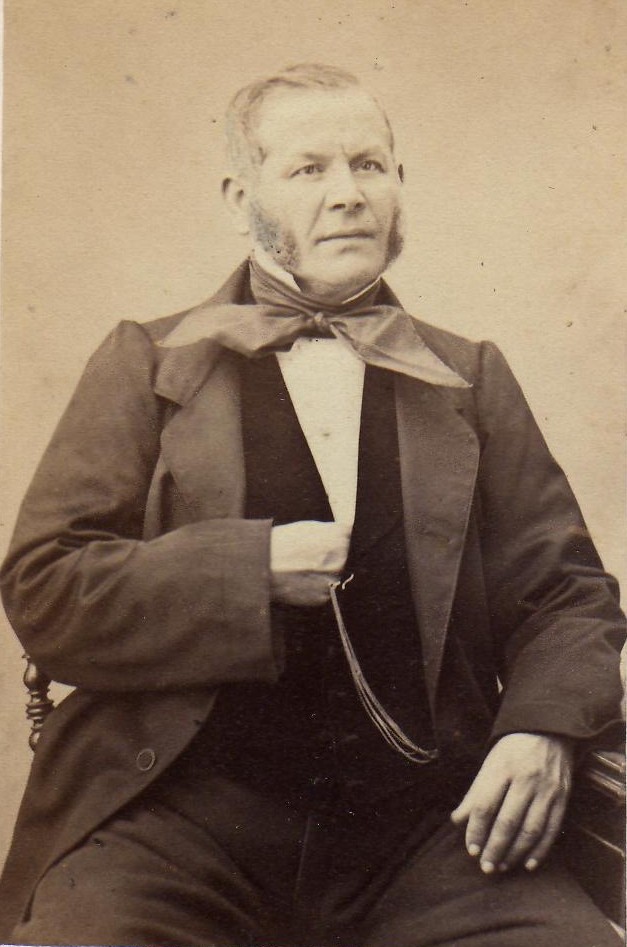 Artisan, Emile Lequin était horloger-bijoutier à Perpignan. Le complet-veston s’est imposé chez les hommes à partir du Second Empire, mais la plupart des Roussillonnais portent encore la redingote. On notera le très beau nœud de cravate ainsi que la chaine giletière pour la montre.